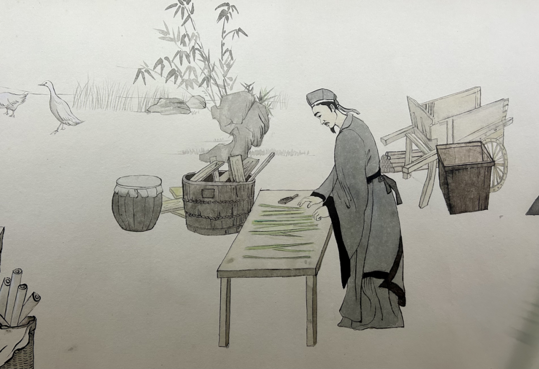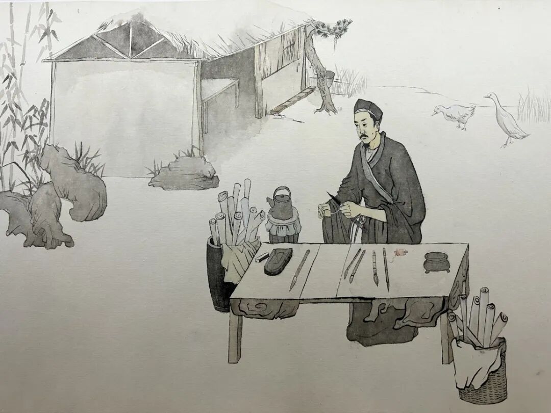 茅龙笔,起源于明代,白沙先生晚年在圭峰山上发现了一种茅草的茅芯与毛笔的毛非常相似,于是采集回家,经过浸泡、锤砸、刮青、捆扎等几个步骤,制作出我们现在看见的茅龙笔。