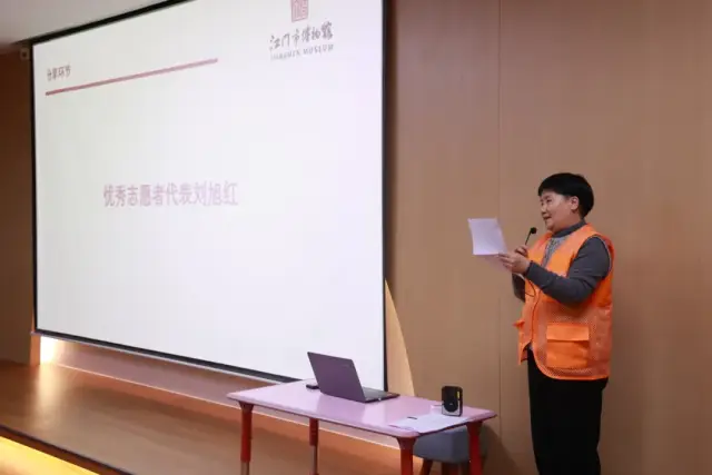 优秀志愿者代表刘旭红表示,今年是她参加志愿服务的第2年,感谢江门市博物馆给了她一个展现自我、服务社会的平台,感谢博物馆志愿者团队对她的指导与帮助。她将继续努力,用自己的行动去践行志愿者精神,为侨乡文化的传承和发扬作出贡献。