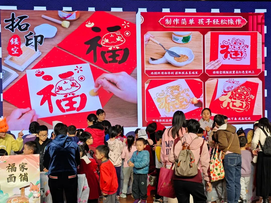 而手工制作环节的“福字拓印”,则将活动的节日氛围推向了高潮。参与者们亲手体验福字拓印的过程,感受传统文化的独特魅力,每一个精心拓印出的福字,都蕴含着对新年的美好期许与祝福。