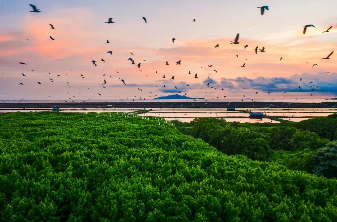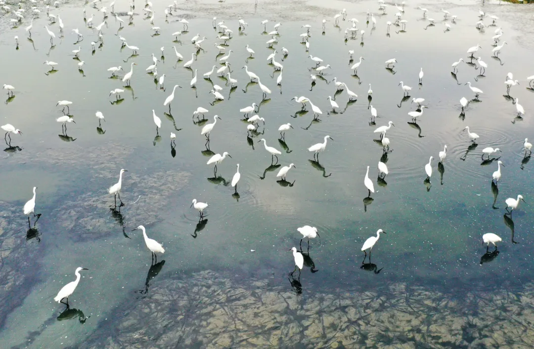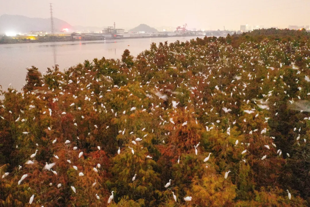 成百上千只白鹭在此安家、觅食、繁育后代,