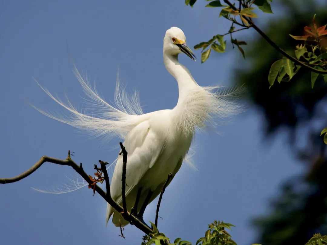 成群结队的鹭鸟在银湖湾湿地公园落脚,