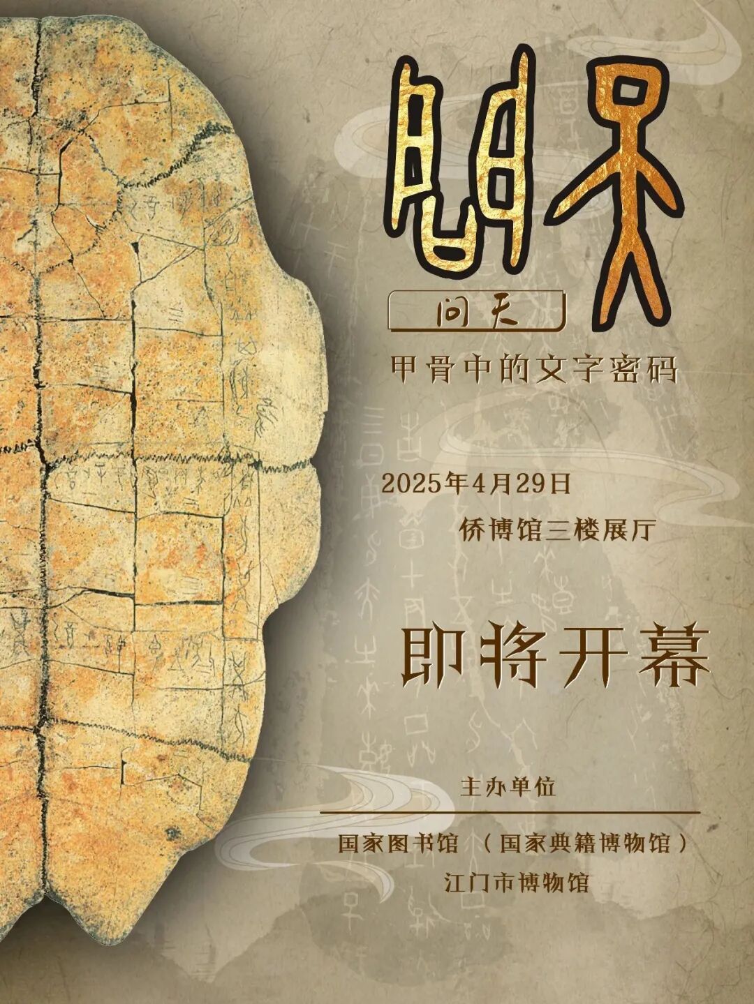 《问天——甲骨中的文字密码》展览将于2025年4月29日正式开幕,展览开幕当天将有国家图书馆专家老师莅临现场,为大家揭开甲骨文的神秘面纱!