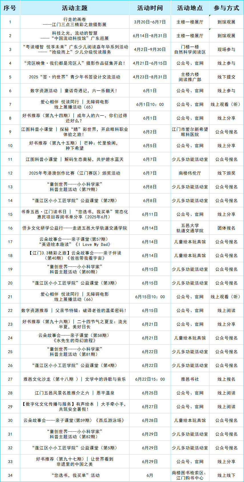 阅读静心 夏日追凉 | 江门市图书馆六月文化活动_公益性活动_江门市文化广电旅游体育局