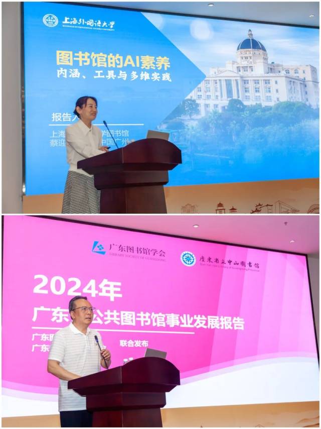 下午的培训环节由江门市图书馆馆长麦旭辉主持。蔡迎春以“图书馆的AI素养:内涵、工具与多维实践”为主题,深入剖析AI素养的内涵、框架及其与信息素养、数字素养的关联,助力图书馆创新实践中充分挖掘AI价值。陈卫东以“2024年广东省公共图书馆事业发展报告”为主题,介绍了《事业发展报告》的撰写背景、数据来源、全省公共图书馆整体发展概况和未来趋势。