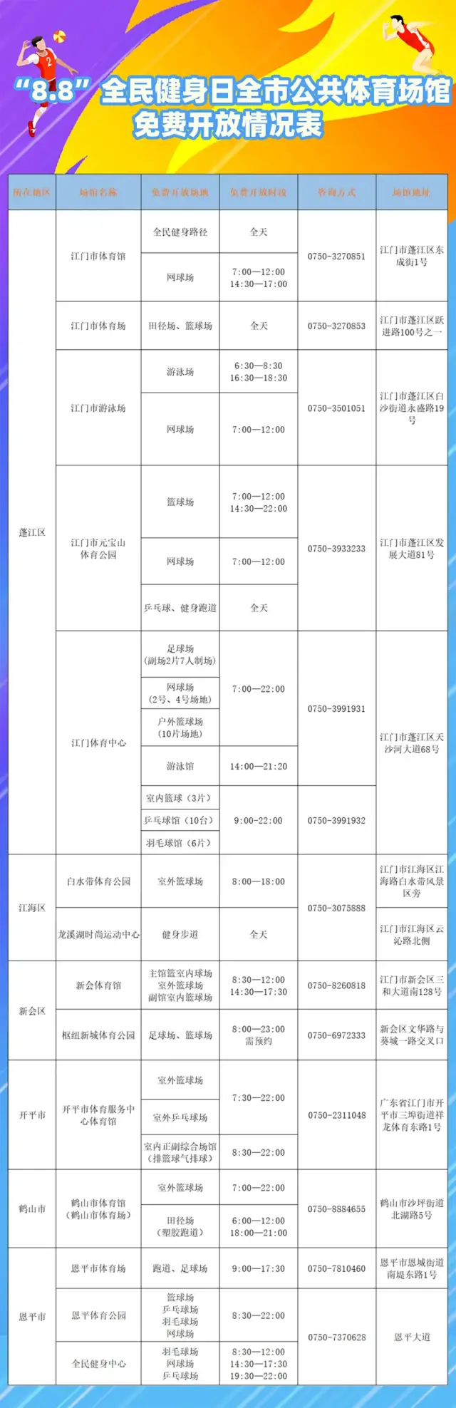 “全民健身日”福利来了!江门这些场馆免费开放→_公益性活动_江门市文化广电旅游体育局