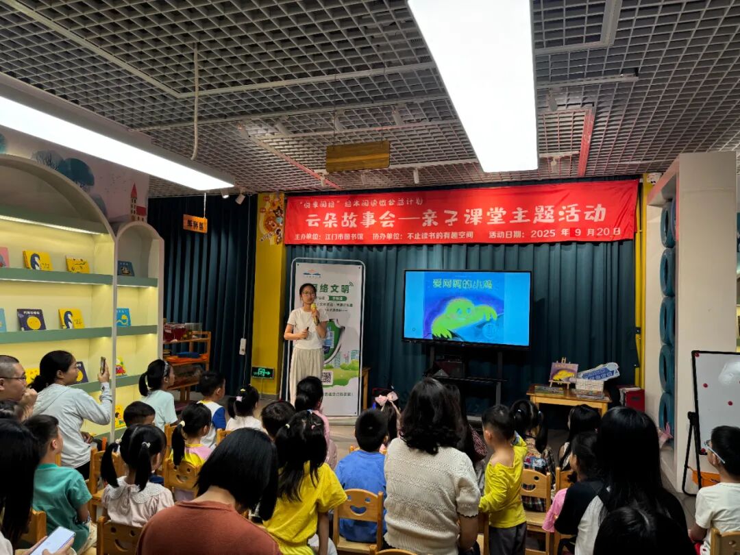 九月,“云朵绘本故事会” 连场开启,从晨光初照到夕阳斜映,小椅子换了好几拨雀跃的小身影,绘本里的故事也流转过不同篇章 —— 有时讲开学季的新奇相遇,有时聊网络世界的奇妙探索。每一场都有软萌互动、轻声欢笑,书页沙沙相互交织,把阅读欢喜满满填进图书馆的秋日时光。