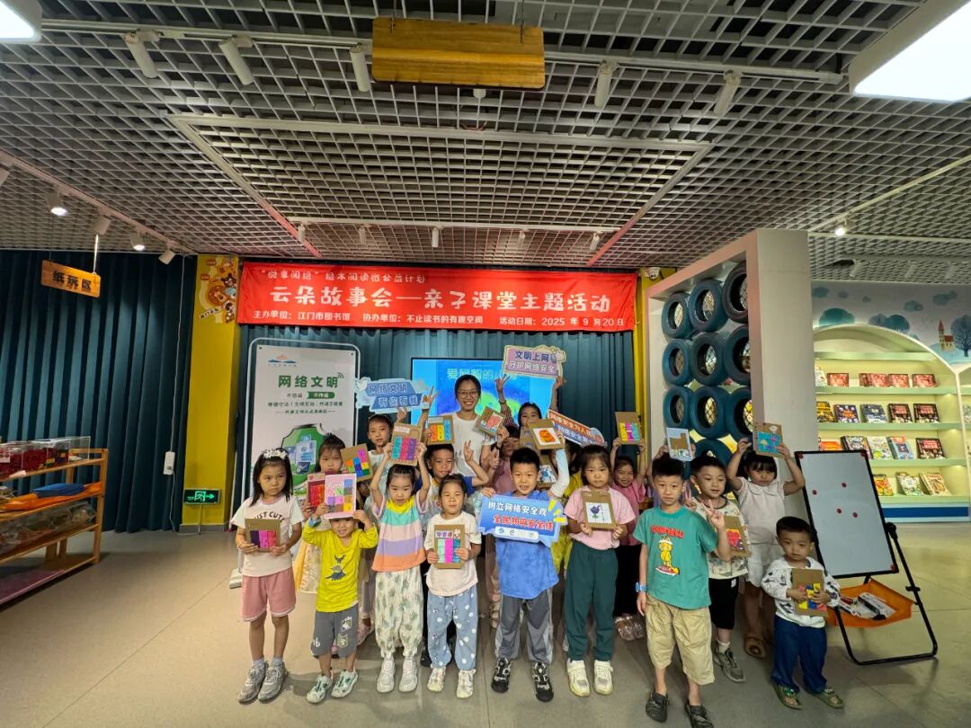 云朵故事会—亲子课堂(第66期)《爱网购的小鸡》以趣味绘本为载体,融合手工实践与基地参观,将网络文明素养教育巧妙融入亲子互动场景,吸引了20组家庭参与,在轻松愉悦的氛围中引导青少年树立理性、健康的网络消费观念。