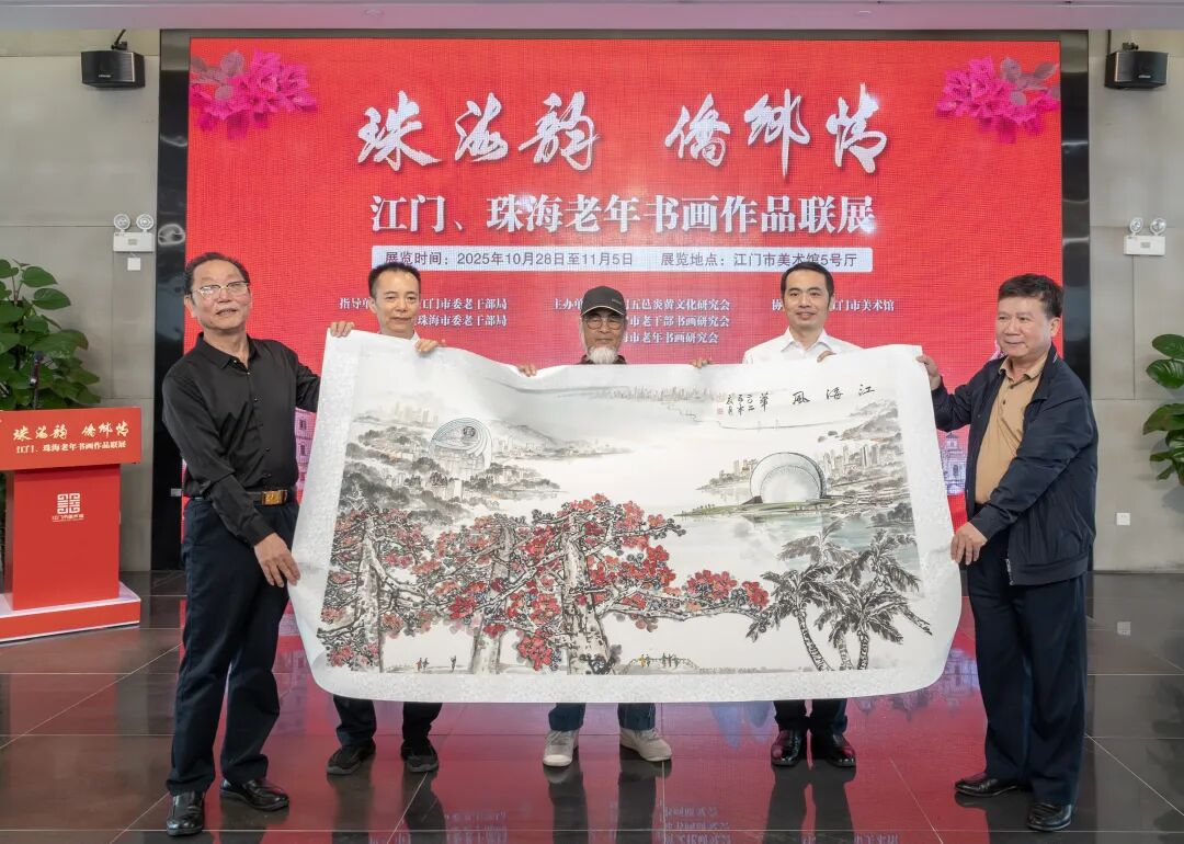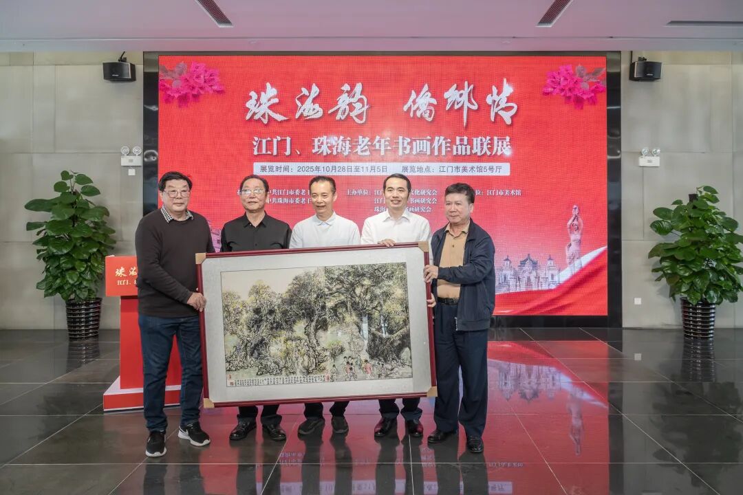 此次联展以笔墨为桥、以丹青为媒,串联起“珠海韵” 与 “侨乡情” 的文化纽带,两地书画家也精心创作了书画作品在开幕活动中互赠留念。