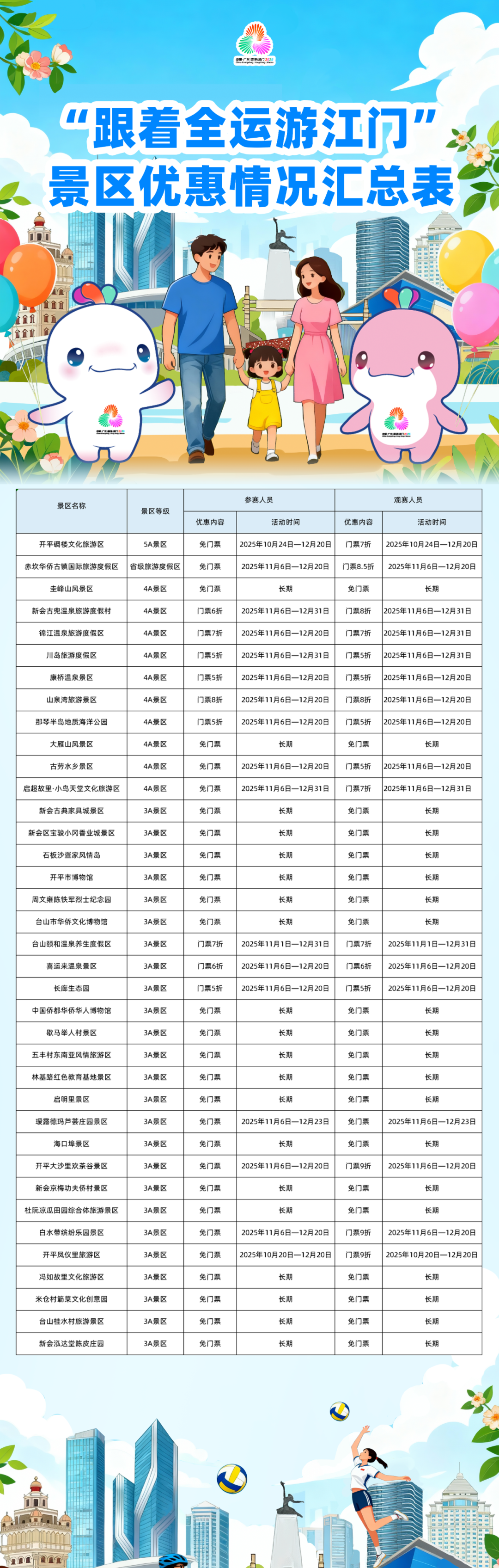 免费!特惠!江门邀你共迎十五运,景区多重福利等你来~_公益性活动_江门市文化广电旅游体育局