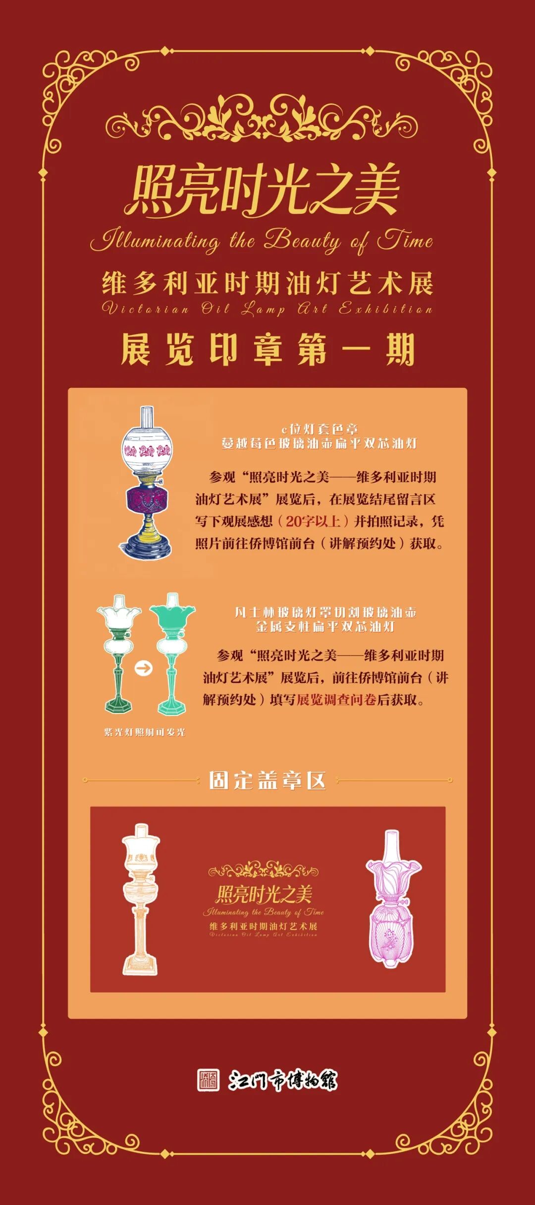 本期纪念印章以展厅中经典油灯为灵感,为你开启一段“寻光之旅”