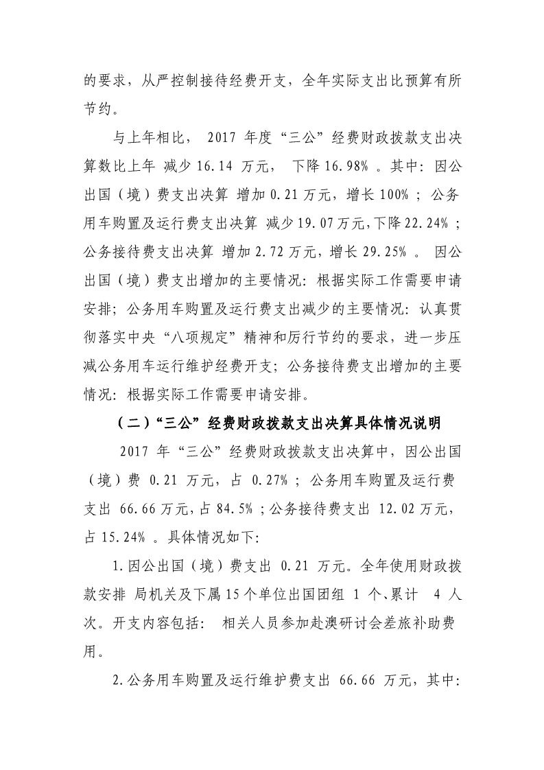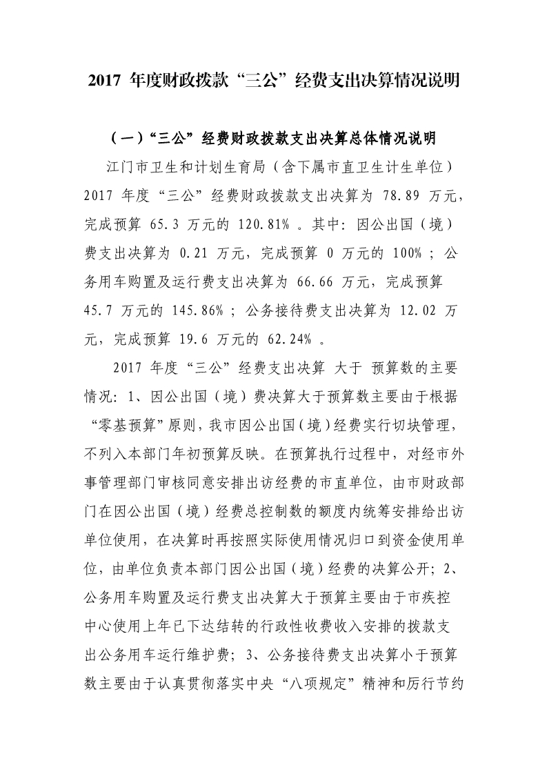 2017 年度财政拨款“三公”经费支出决算情况说明_财政预决算_江门市卫生健康局