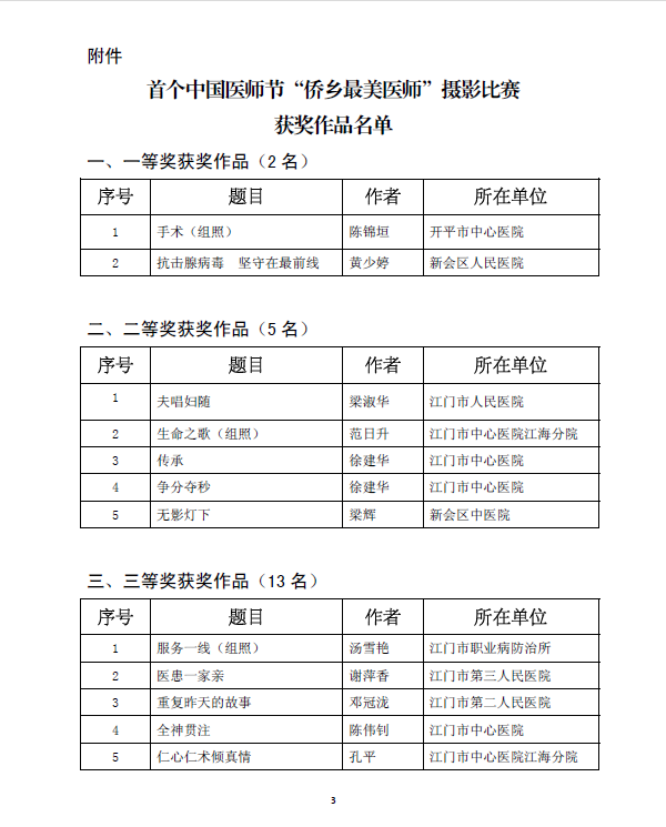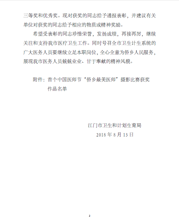 关于首届中国医师节“侨乡最美医师”摄影比赛结果的通报_行政执法公示_江门市卫生健康局