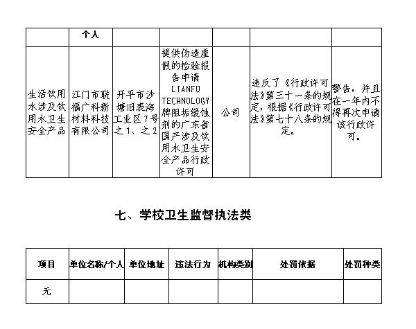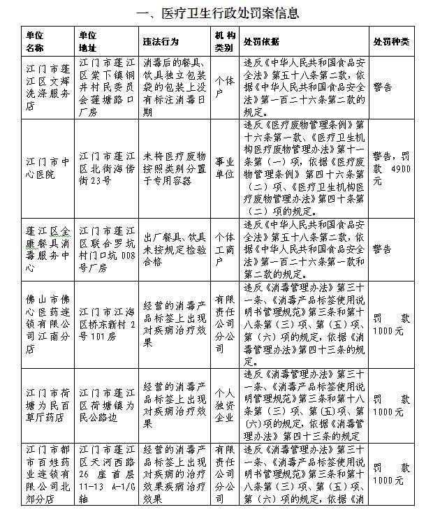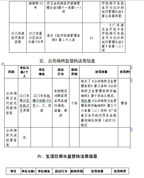 根据《江门市卫生和计划生育局卫生监督信息公示制度(试行)》要求,我局现对2019年1月份有关卫生监督信息进行公示,具体详见附表。
