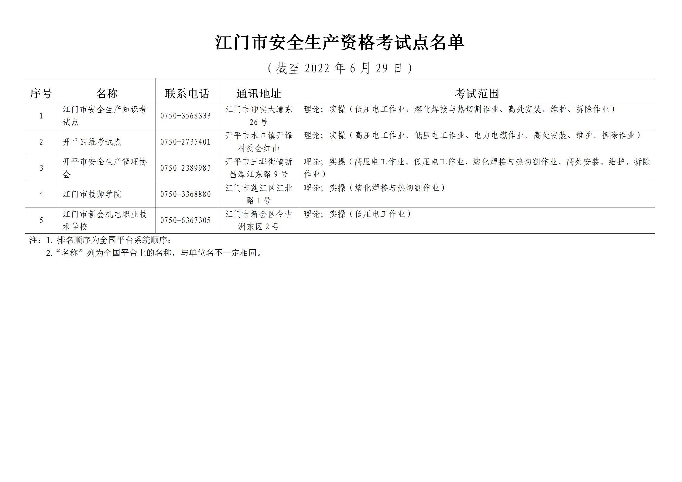 关于更新安全生产资格考试点及安全培训机构名单的公告_培训考核_江门市应急管理局