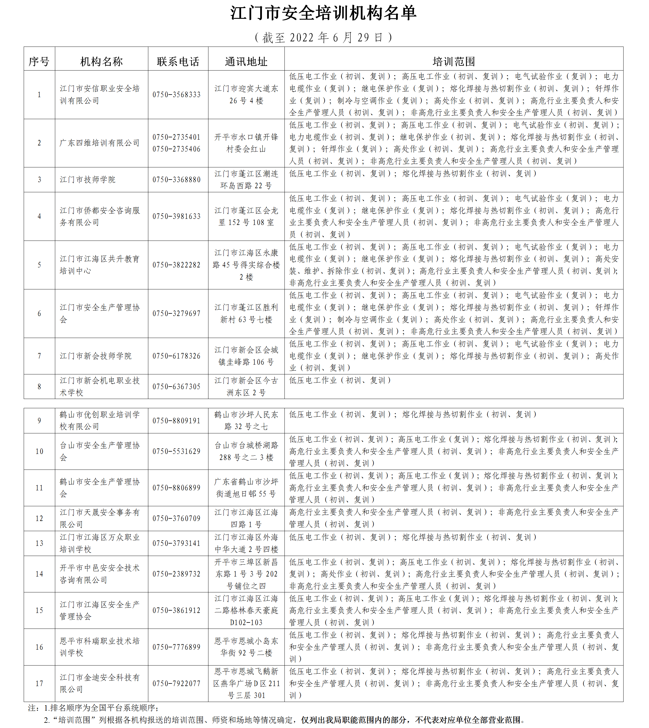 2.江门市安全培训机构名单