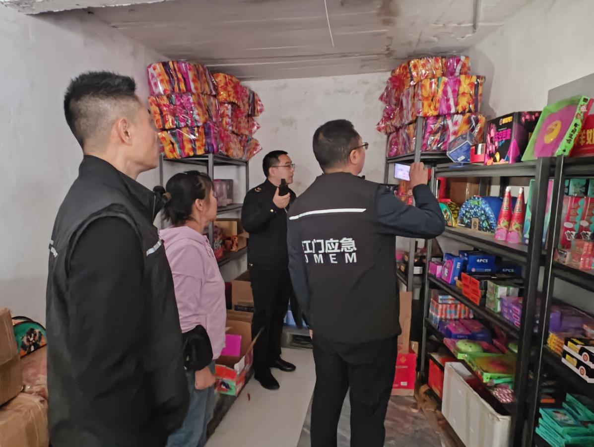 1月14日,市应急管理局党委委员、副局长高正华,党委委员、派驻纪检监察组组长朱江带队前往蓬江区的烟花爆竹零售点进行联合执法检查。检查期间,执法人员发现2家单位在未取得烟花零售许可的情况下,租赁店铺附近的仓库存放烟花并用于销售经营,存在非法经营烟花爆竹的违法行为。经现场清点,现场储存烟花300余箱,总重量约3300KG。执法人员对现场查获的烟花进行了扣押,并依法立案查处,将依法严肃追究相关责任人的法律责任。