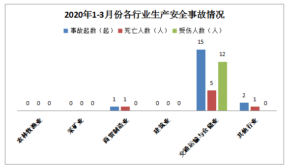 1-3月,全市共发生生产安全事故18起,其中商贸制造业事故1起,交通运输和仓储业事故15起,其他行业事故2起。