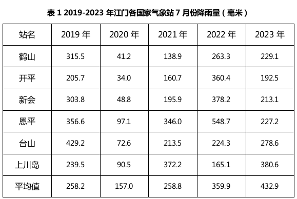 (二)风情:预计,月内可能有1~2个热带气旋影响我市,大致出现在中旬到下旬初。据统计,2019-2023年7月份平均1个台风影响江门。