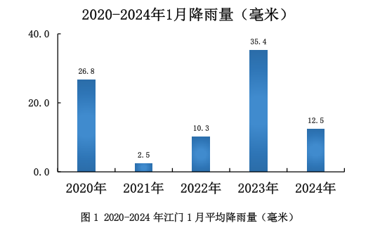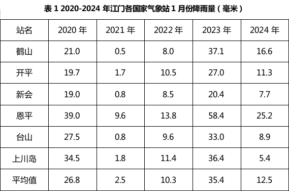 (二)风情:1月热带气旋影响我市的可能性小。据统计,2020-2024年1月份无台风影响江门。