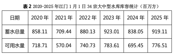 (三)水情:2024年12月份月平均流量2400m3/s,较常年同期少18%。2025年1月1日,34宗大中型水库蓄水总量919.11百万方,较常年同期多7%,蓄水总量占总正常库容比例为70%,可用水量776.51百万方,占总兴利库容比例为67%;21宗供水水库蓄水总量659.35百万方,较常年同期多8%,可用水量537.81百万方,占兴利库容比例68%。