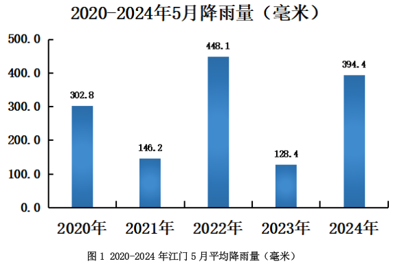 表1 2020-2024年江门各国家气象站5月份降雨量(毫米)