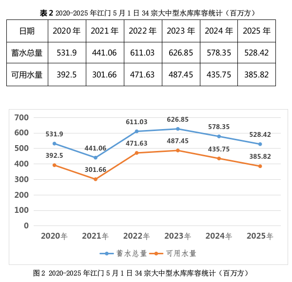 (三)水情:4月份西江干流水道马口水文站月平均流量2160立方米每秒,较常年同期少63%。5月1日,34宗大中型水库蓄水总量528.42百万方,较常年同期少11%,蓄水总量占总正常库容比例为40%,可用水量385.82百万方,占总兴利库容比例为33%;21宗供水水库蓄水总量398.81百万方,较常年同期少9%,可用水量277.27百万方,占兴利库容比例35%。