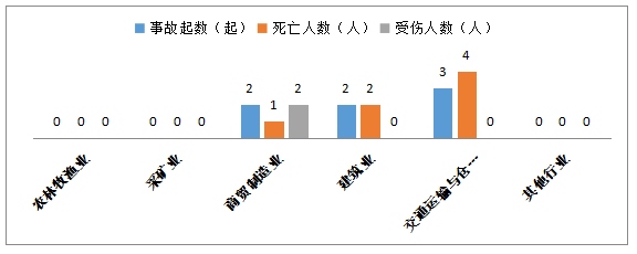 1-2月,全市共发生生产安全事故7起,其中商贸制造业2起,占28.5%;建筑业2起,占28.5%;交通运输和仓储业3起,占43%。