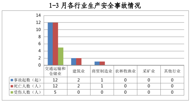 1-3月,全市发生生产安全事故15起、死亡15人、受伤5人、直接经济损失103.95万元,事故起数、死亡人数、受伤人数和直接经济损失同比2023年分别下降67.39%、下降42.31%、下降85.29%、下降86.89%。