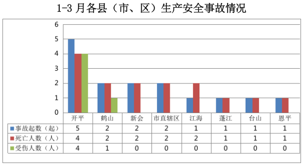开平事故5起,鹤山事故2起,新会事故2起,市直辖区1事故2起,江海事故1起,蓬江事故1起,台山事故1起,恩平事故1起。