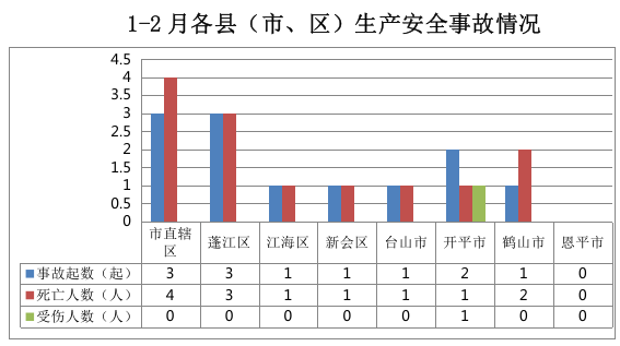 市直辖区事故3起,蓬江区事故3起,江海区事故1起,新会区事故1起,台山市事故1起,开平市事故2起,鹤山市事故1起。恩平市无发生生产安全事故。