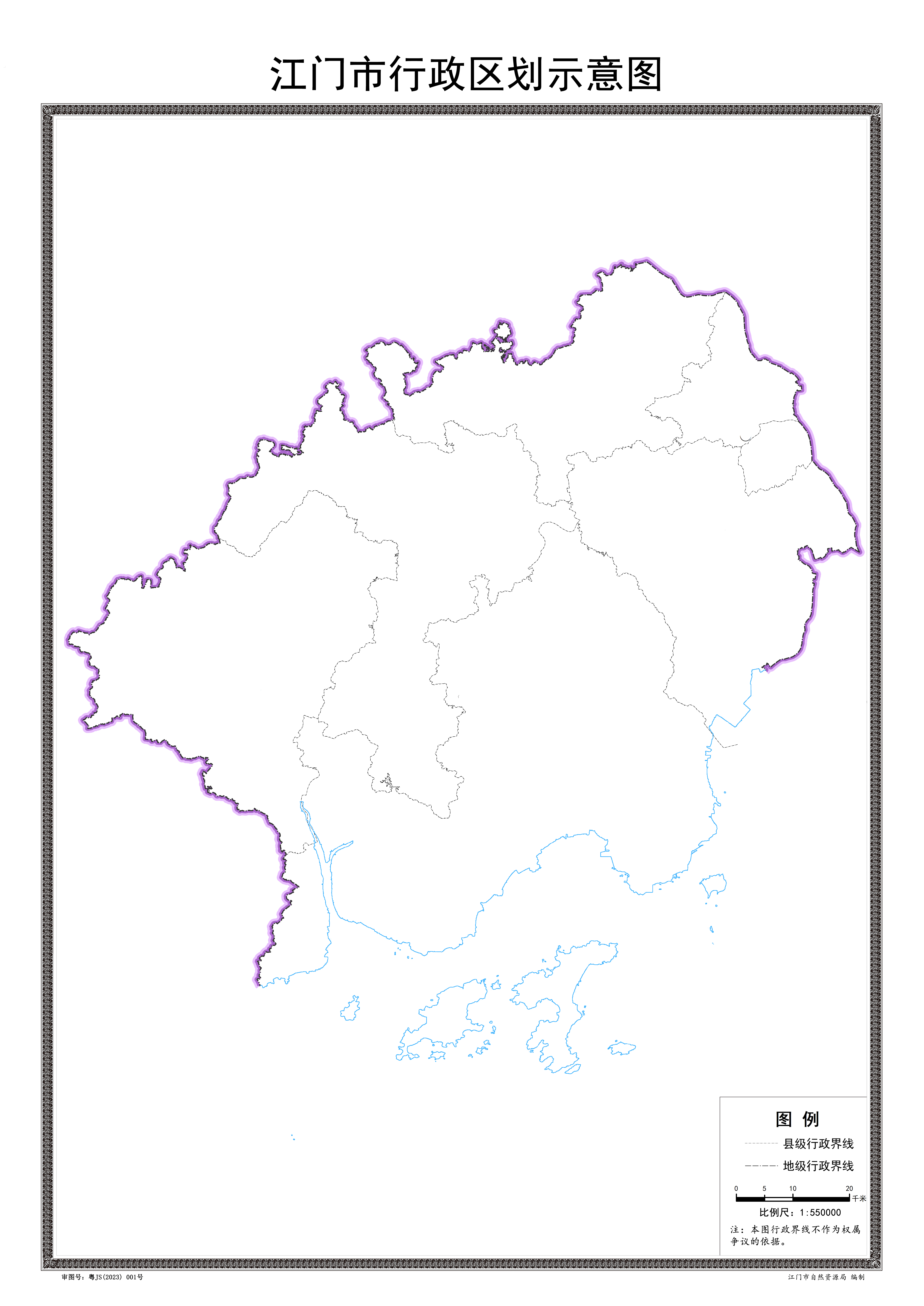 为切实做好地理信息服务,满足政府机关、企事业单位及社会公众对地图使用的需求,确保合法合规登载使用地图,江门市自然资源局组织编制了2023版江门市标准地图,并在江门市自然资源局网站(/bmpd/jmszrzyj/ywgk/chgl/bzdtfw/)发布,提供下载使用。