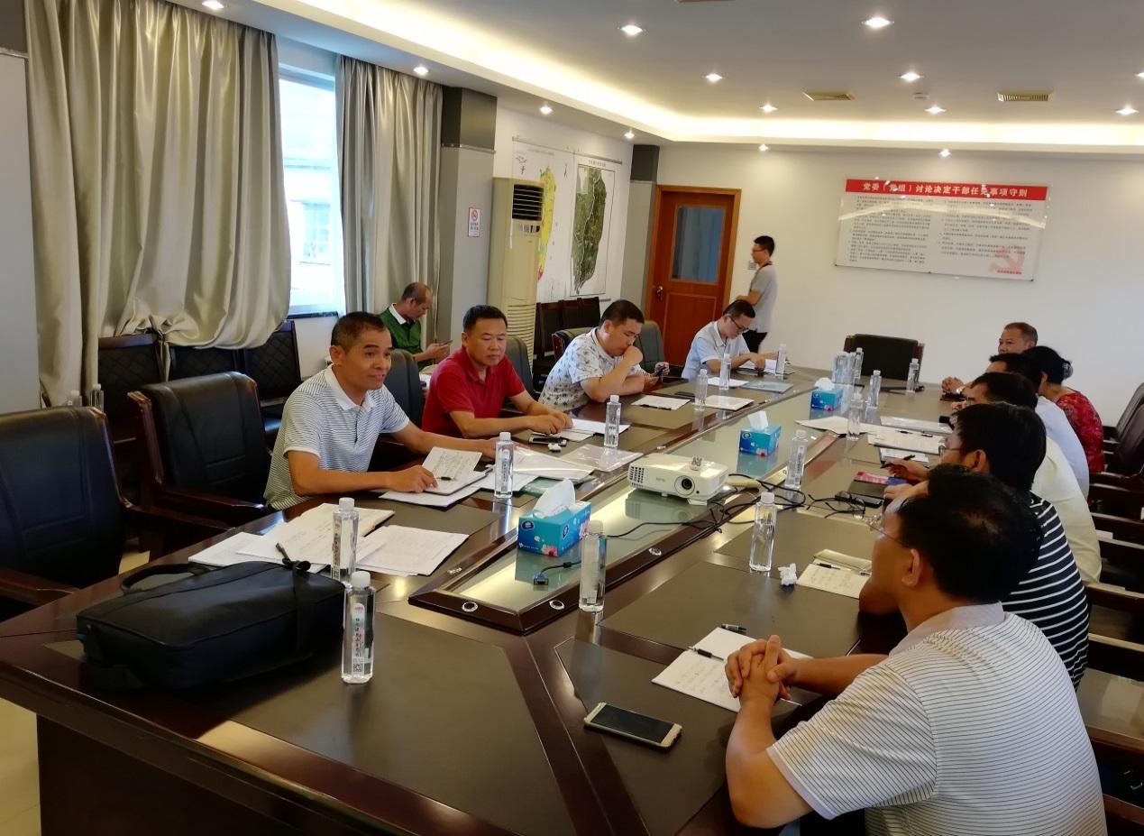 图四:督导组在新会沙堆镇政府听取汇报、查阅资料