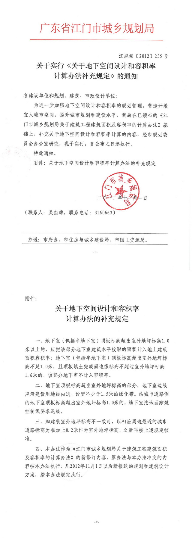 关于实行《关于地下空间设计和容积率计算办法补充规定》的通知_文件发布_江门市自然资源局