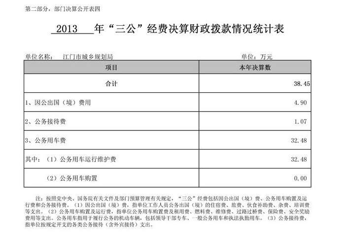 2013年“三公”经费决算财政拨款情况统计表_部门决算_江门市自然资源局