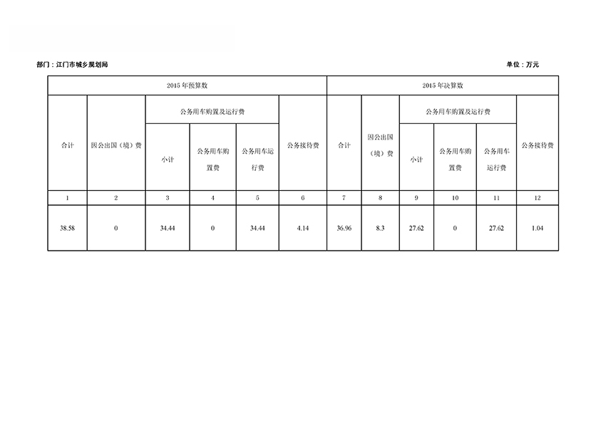2015年江门市城乡规划局三公经费预决表_部门预算_江门市自然资源局