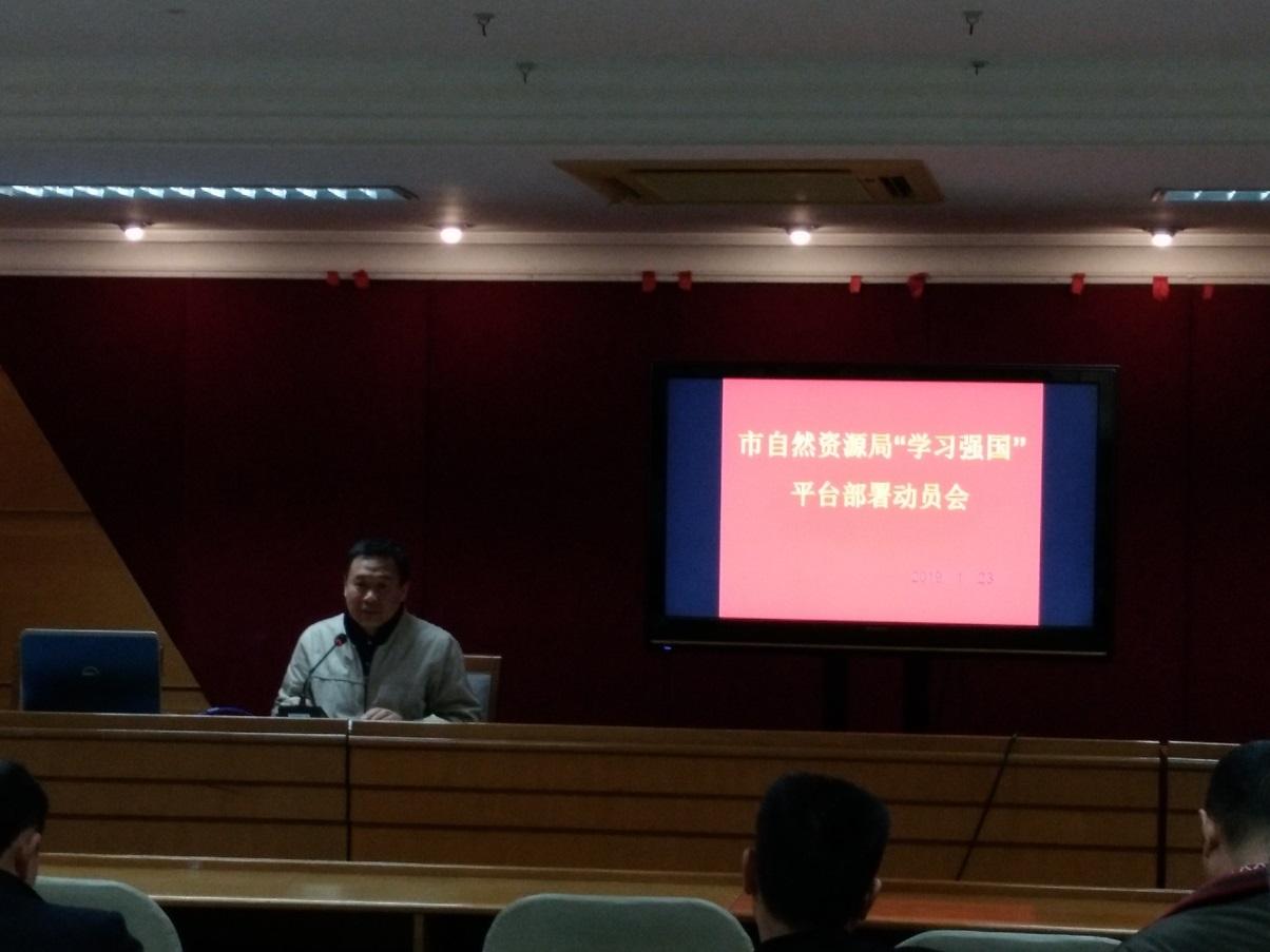 为深入学习习近平新时代中国特色社会主义思想和党的十九大精神,按市委统一部署,1月23日上午,市自然资源局召开动员会,安排部署加快推进“学习强国”学习平台推广使用工作。局机关和直属单位各党组织书记和党务工作者共25人参加了会议。