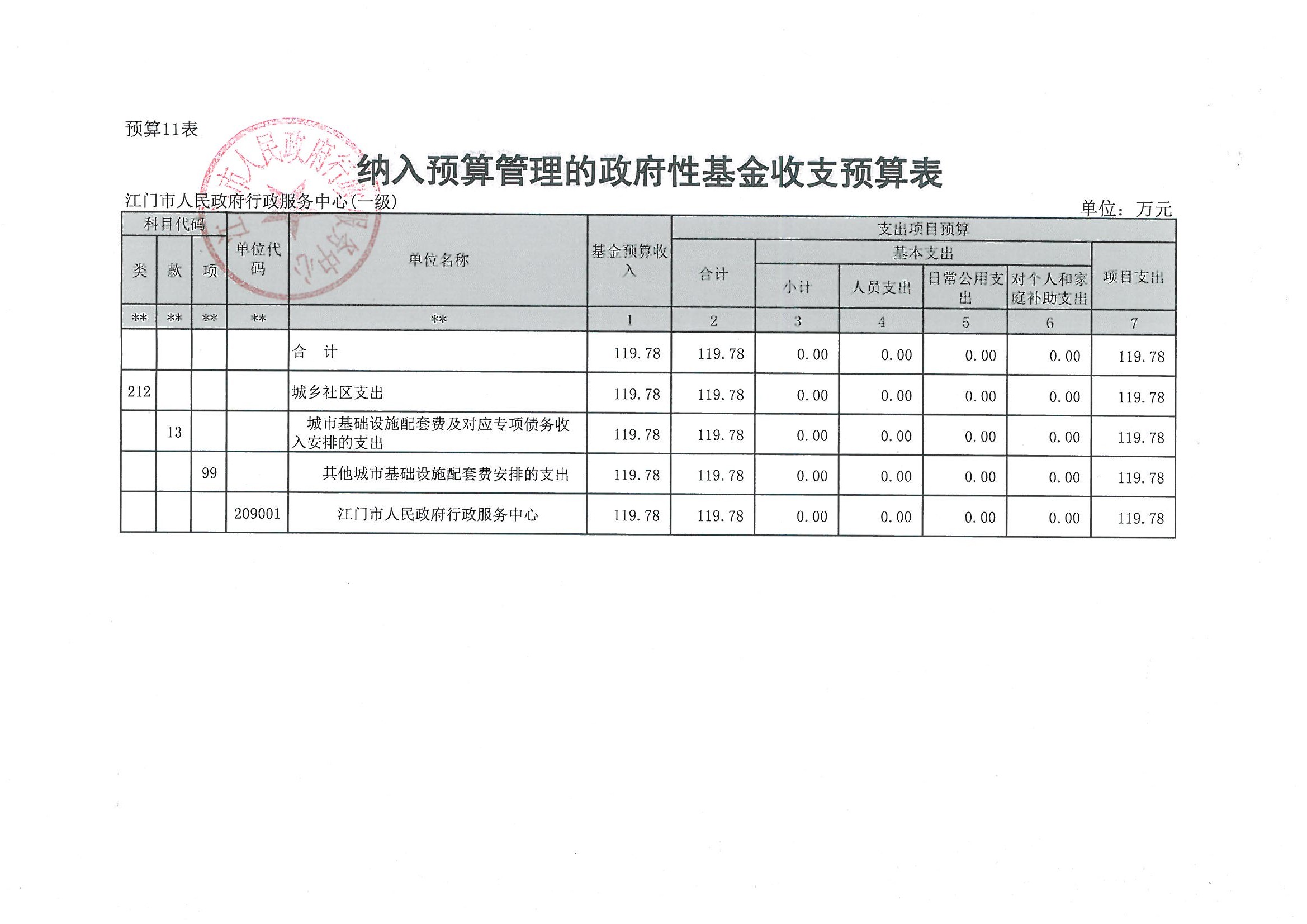第一部分 2015年江门市人民政府行政服务中心预算