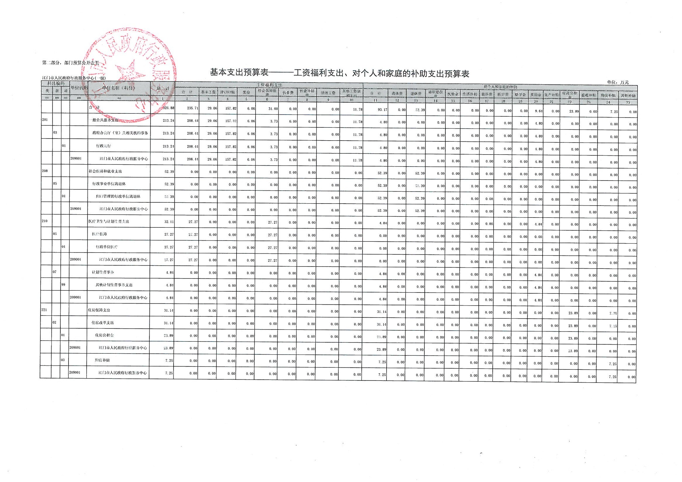 五、2015年基本支出预算表—工资福利支出、对个人和家庭的补助支出预算表