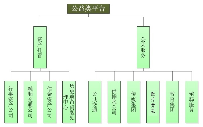 公益类平台由公益类企业搭建组成,以保障民生、服务社会、提供公共产品和公共服务为主要目标,强化城市服务功能,必要的产品或服务价格可以由政府调控。