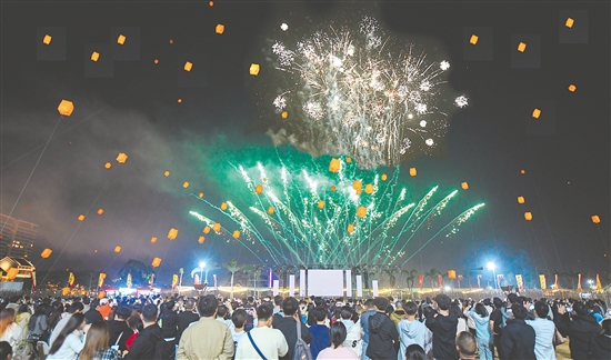 2025年12月31日晚,古劳水乡迎来年度高光时刻——跨年烟花狂欢夜,当晚入园人次突破2万。当天19时至24时,电音派对激情炸场,动感节奏点燃全场氛围;篝火晚会温情围聚,欢声笑语暖意融融;千盏电子孔明灯冉冉升空,承载着人们对新年的期许飞向夜空。两场大型烟花秀分别于21时与24时璀璨绽放,绚烂光影映照水乡夜空,数万名市民游客携手倒数,共同迎接2026年的到来。同期举办的美食文化节,让市民游客在欢乐氛围中尽享地道岭南风味。