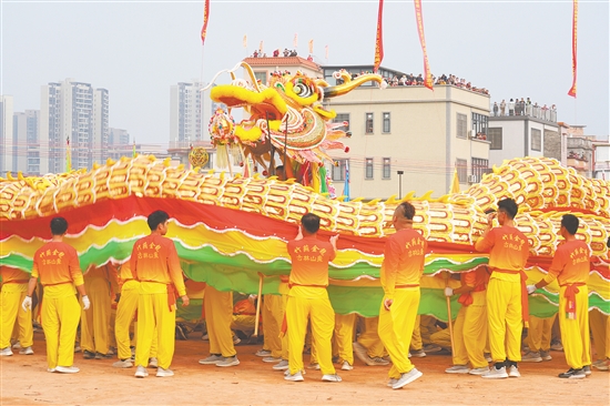 在2025年竹蓢第五届金龙文化节现场,一条百米长金龙全身金鳞闪闪,璀璨耀目。 陈佩筠 摄