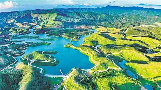 近年来,我市以河湖长制为总抓手,推动河湖面貌发生根本性变化,让“水清、河畅、岸绿、景美、人和”的幸福河湖图景在侨乡大地徐徐展开。图为鹤山青年水库。麦和幸 摄