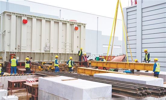 三山岛海上风电柔性直流输电工程项目现场一派热火朝天景象。