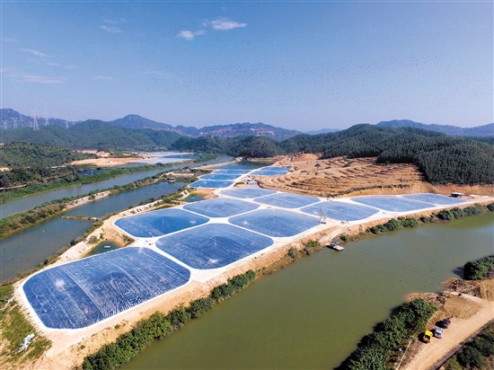近年来,恩平市大力发展现代农业与食品产业集群。图为位于横陂镇蓝田村的恩平市镇海湾蓝田青蟹养殖基地。