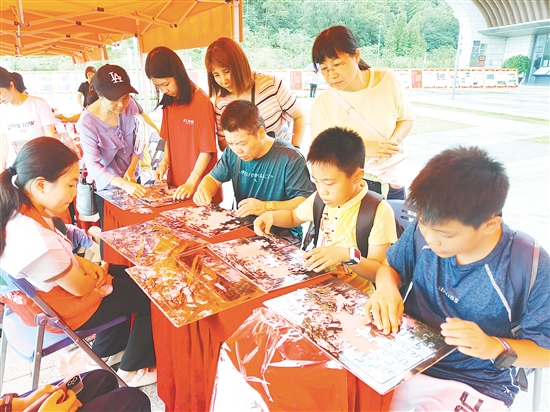 亲子家庭参与文物拼图大挑战。