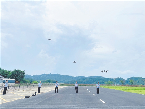 在恩平市泉林黄金小镇那金谷航空飞行基地,恩平市公安局的“飞手”们精准操控无人机升空,进行相关科目演练。经过广东警官学院的专项培训,这批“飞手”已经逐渐成为恩平公安战线无人机操控的主力军。据介绍,“双百行动”实施过程中,广东警官学院充分发挥公安教育资源优势,与恩平市公安局深度合作,精心打造无人机驾驶执照与警务实战应用培训班,恩平市公安局共有20名警员参加该项培训。