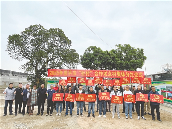 2月9日,恩平市牛江镇马龙塘村暖意融融。当天,2025年恩平市“社村”合作试点村集体分红仪式在此举行,100万元分红被发至19个试点村集体代表手中。其中,圣堂镇水塘村以17.65万元拔得头筹,沙湖镇南塘村、牛江镇马龙塘村紧随其后。从2024年仅8个村获得分红,到2025年覆盖19个村,分红村数量翻了一番有余,恩平“社村”合作模式结出沉甸甸的果实。