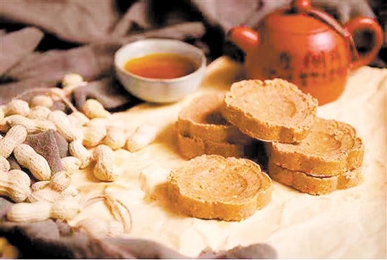 “它入口松化、香甜适中、食后齿颊留香,一般原味吃食,可作茶艺小食,也可作煎糯米薄饼馅料、汤圆馅料,还可以搅碎用作捞鱼生。”外海花生饼手工制作技艺传承人陈炳松介绍,如今许多江门人将外海花生饼用在咖啡制作中。
