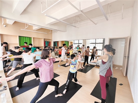 居民参加永贤社区举办的活力健身操及亲子瑜伽“邻”距离健康系列活动。