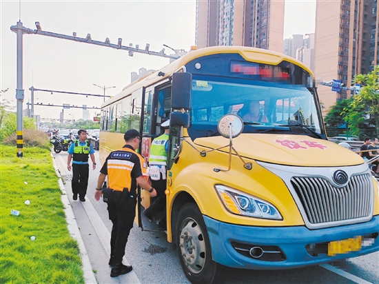 此外,为进一步提升校车安全性能,保障学生乘车安全,志愿者们还协助交警向校车驾驶人送上“交通安全开工第一课”,并对校车进行全面检查。“这是我们第3年在开学季为校车驾驶人送上‘交通安全开工第一课’,旨在增强他们的交通安全意识,切实化解交通安全风险。”黄立峰说。